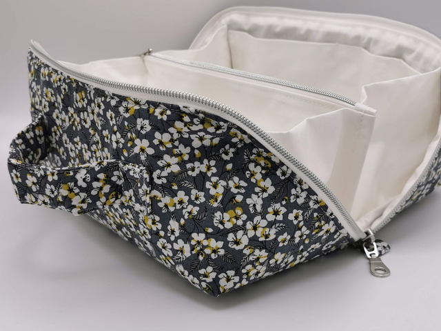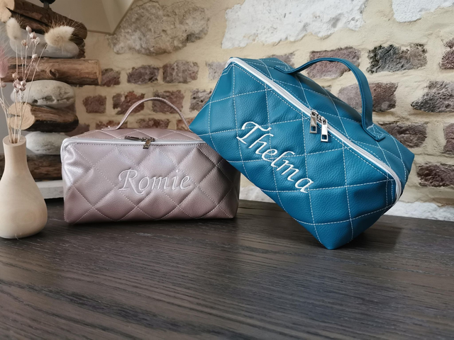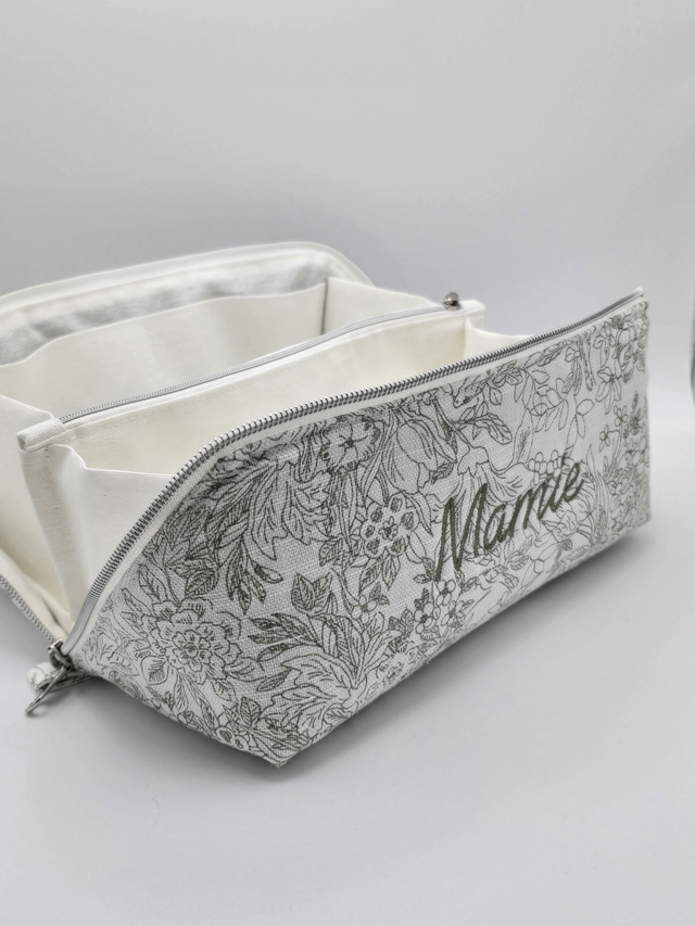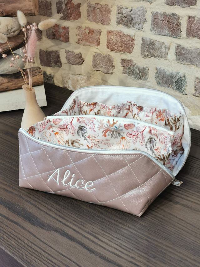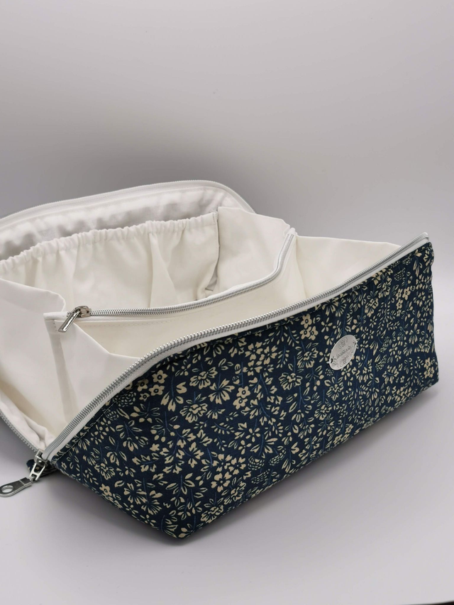 Vous pourrez ranger toutes vos affaires de toilette dans cette grande trousse.